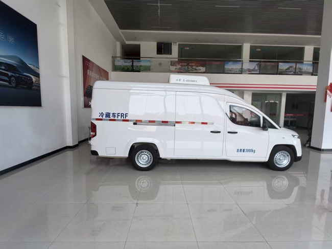 五菱菱势新能源国六面包冷藏车货箱尺寸:整车尺寸:5430*1760*2195(2370)mm,货厢尺寸:2700*1450*1220(1350)mm。可下地下车库面包冷藏车(高度2.2米)