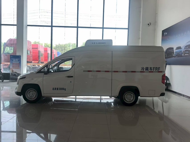 五菱菱势新能源国六面包冷藏车货箱尺寸:整车尺寸:5430*1760*2195(2370)mm,货厢尺寸:2700*1450*1220(1350)mm。可下地下车库面包冷藏车(高度2.2米)